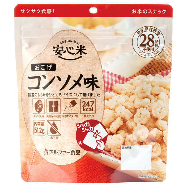 【アルファー食品 安心米おこげ コンソメ味 30袋入】7年保存 アレルゲンフリー もち米を…のご注文をいただきました! |