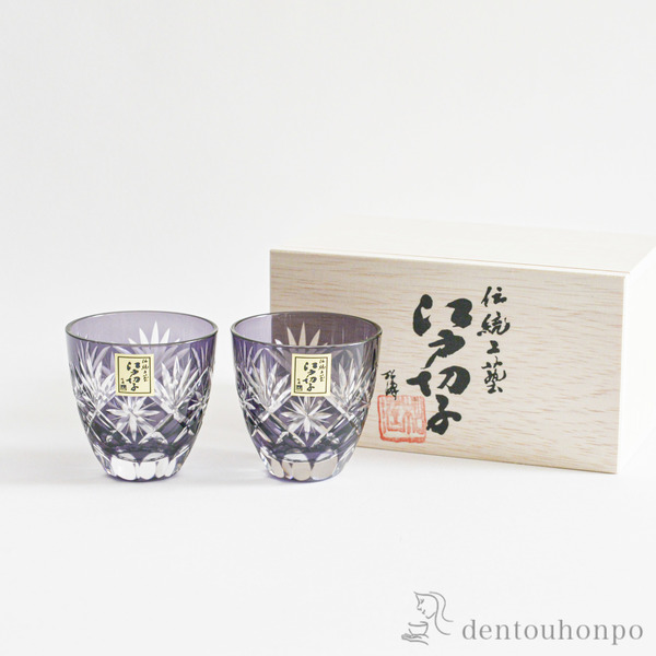 【送料無料】江戸切子 江戸紫切子 ぐい呑星切子 ペア≪13時までのご注文即日発送(休業日…