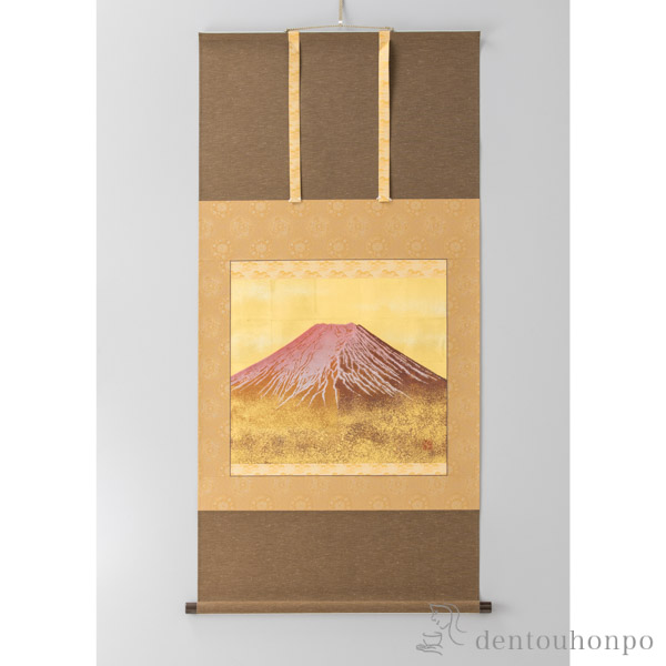 【送料無料】掛軸 黎明赤富士≪1ヶ月程で出荷予定≫ ( 木札名入れ有料 掛軸 かけじく 表装…