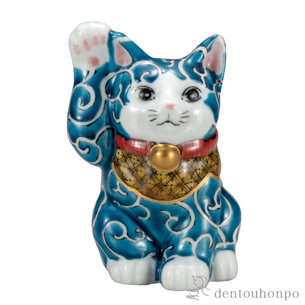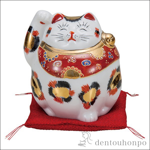 【送料無料】招き猫 色絵唐草 4号≪在庫確認後、通常即日で出荷≫ ( 木札名入れ有料 置物 …
