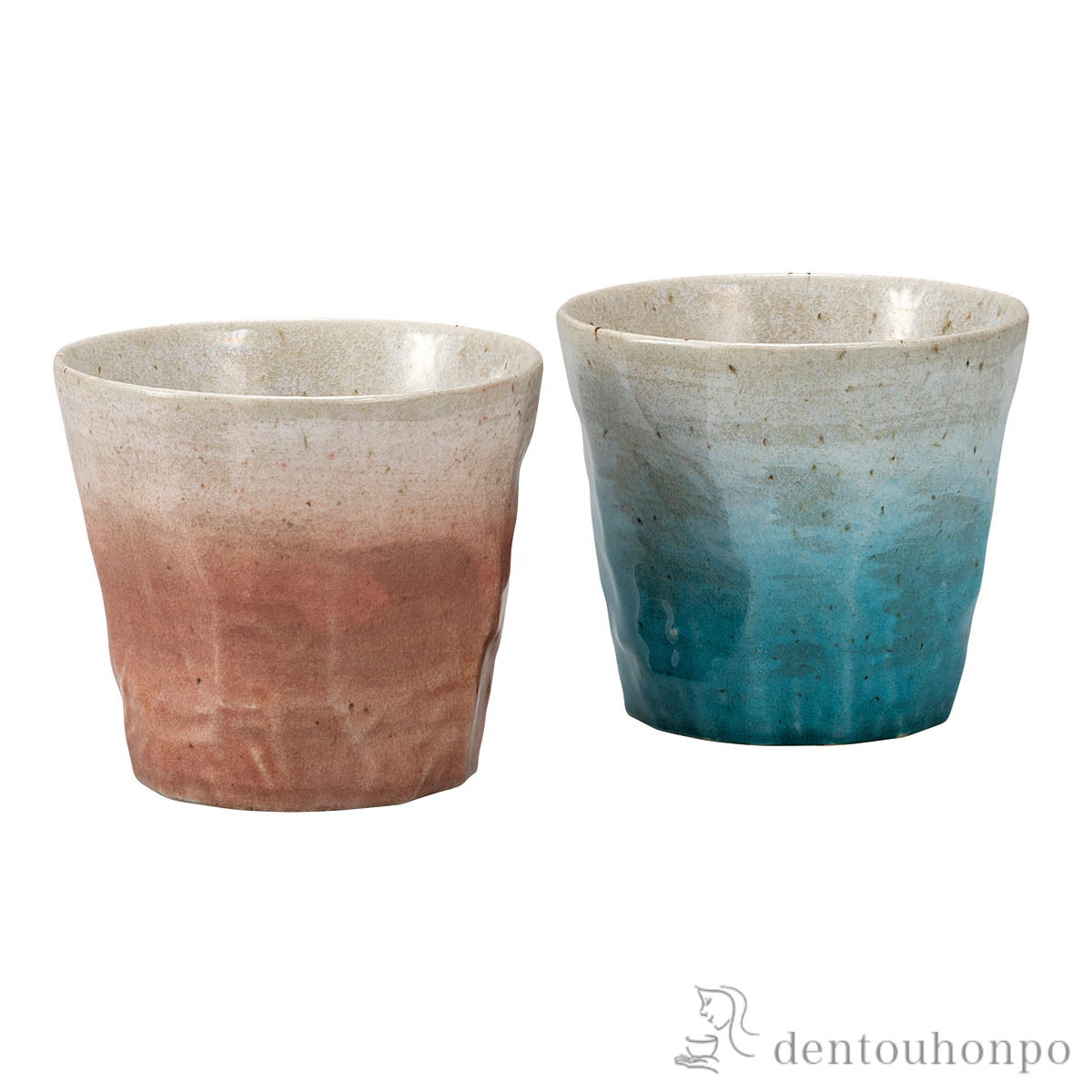 ペア焼酎カップ 釉彩 水色/オレンジ 竜彩≪在庫確認後、通常即日で出荷≫ ( 焼酎カップ …