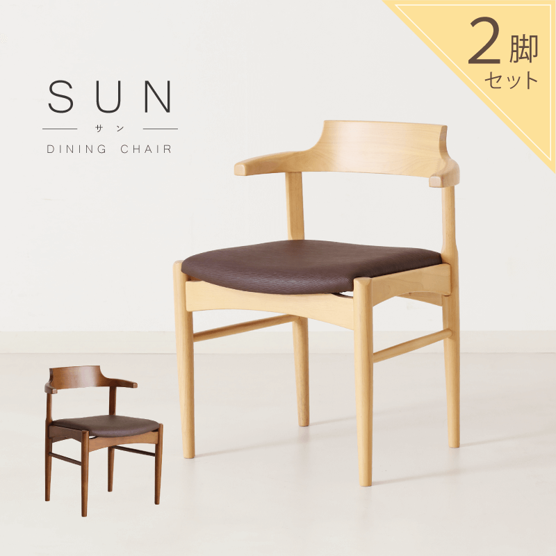 SUN ダイニングチェア 2脚セット 肘付 半肘 座面高44cm 木製 天然木 コンパクト 完成品 …のご注文をいただきました! |