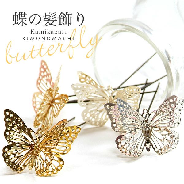 Uピン髪飾り全2色「蝶々 ゴールド、シルバー」 振袖髪飾り ヘアアレンジ 【メール便不…のご注文をいただきました! |
