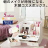 (お買い物マラソン)メイクボックス 鏡付き 大容量 三面鏡 木製 コスメボックス 持ち運び おしゃれ かわいい 化粧品 収納 ボックス 卓上 ドレッサー メイクBOX 化粧箱 ミラー付き プレゼント